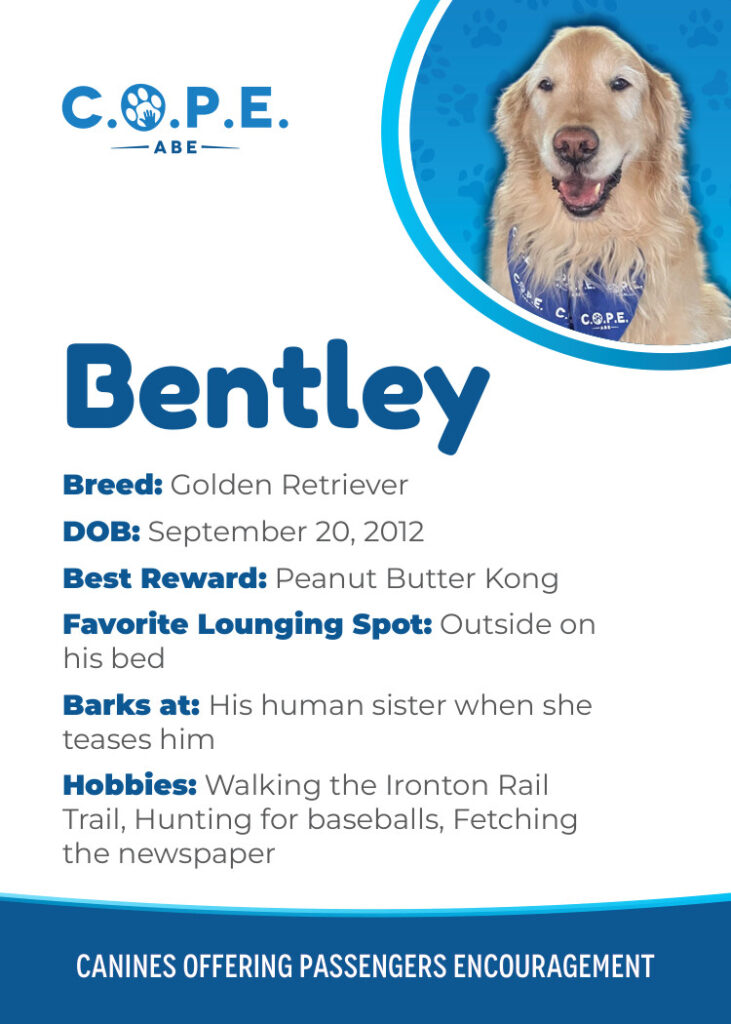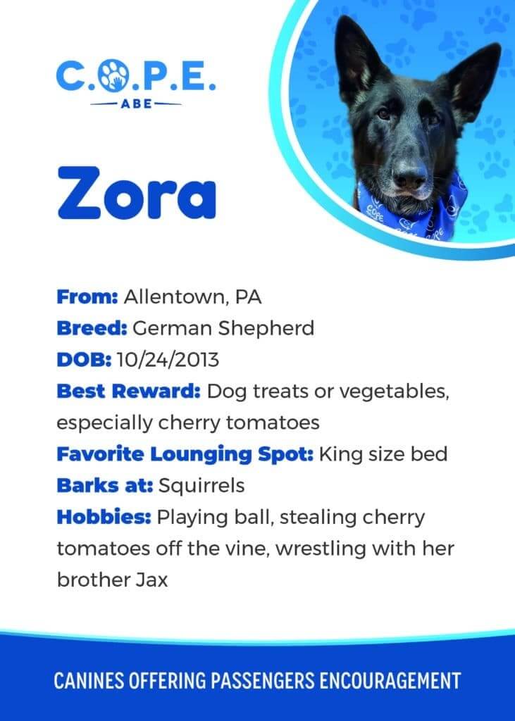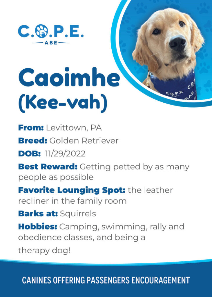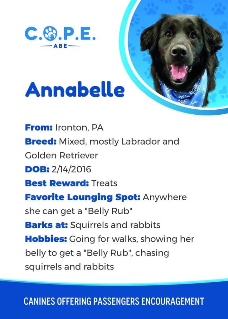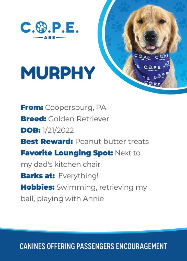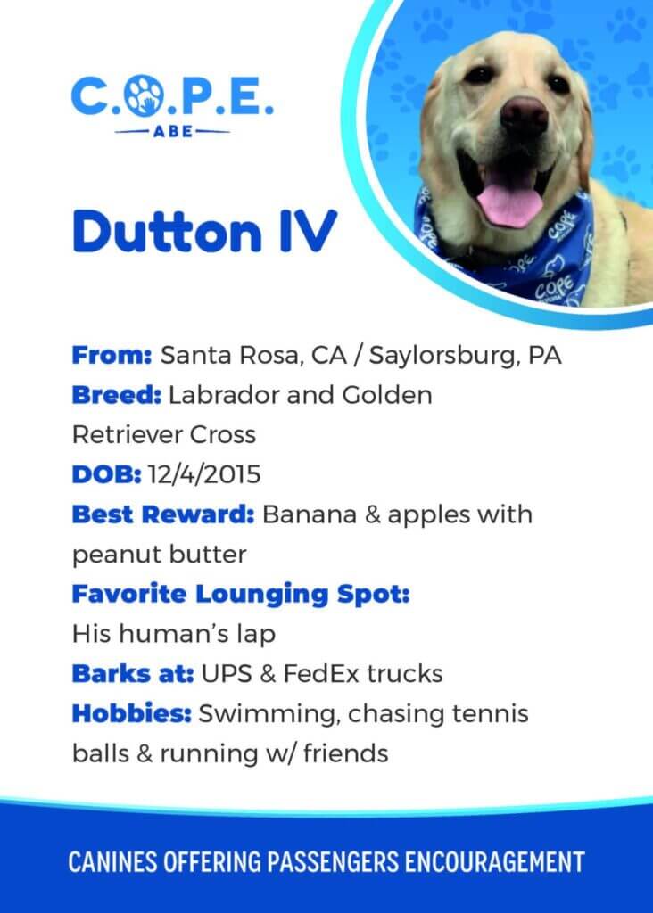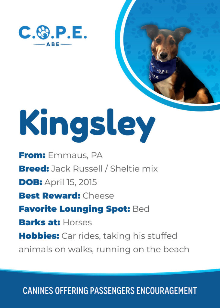 All Flight InformationMeet our C.O.P.E. crew! Check out some of our volunteer’s favorite hobbies and best rewards, as well as more information about their breeds and ages. Please say hello next time you are traveling through ABE!